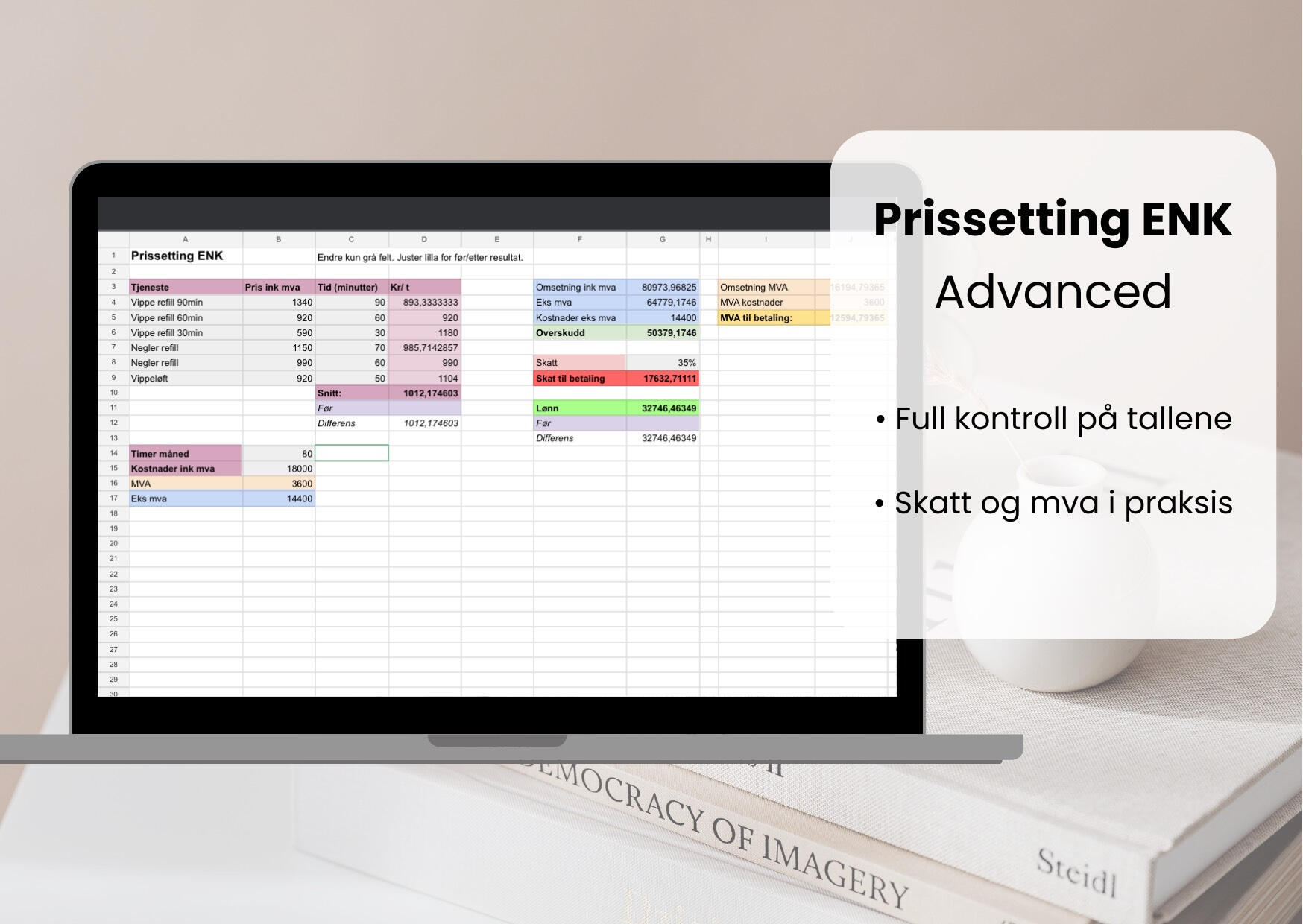 Her finner du link til regnearket: Prissetting ENK Advanced